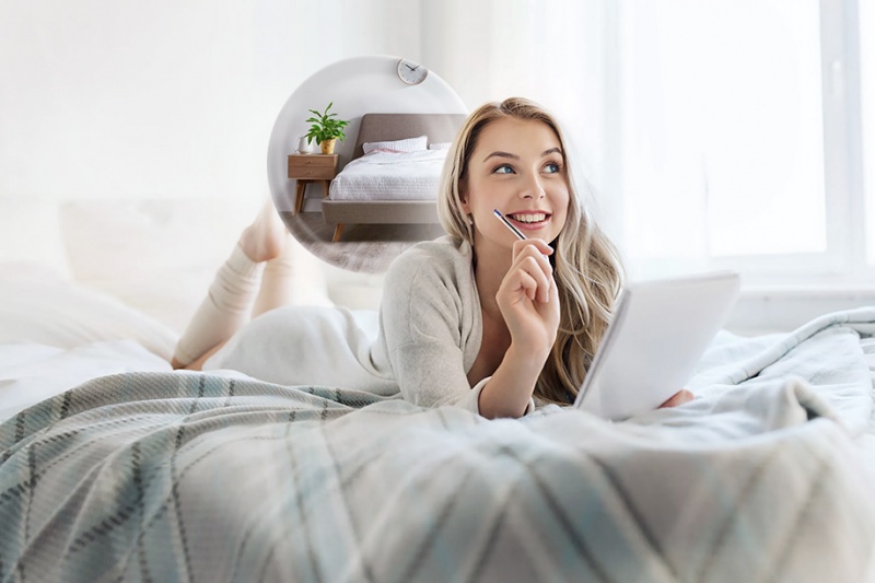 Если в спальне вы будете только спать, тогда интерьер должен содержать минимум мебели. Декор, способствующий расслаблению, и приятный текстиль создадут нужную атмосферу в зоне отдыха. Основное правило, которого советуют придерживаться современные дизайнеры — оформлять спальню натуральными материалами природных оттенков. Подушки и простынь можно выбрать изо льна или шелка, покрывала — из бамбука или меха, а одеяло — из пуха.
