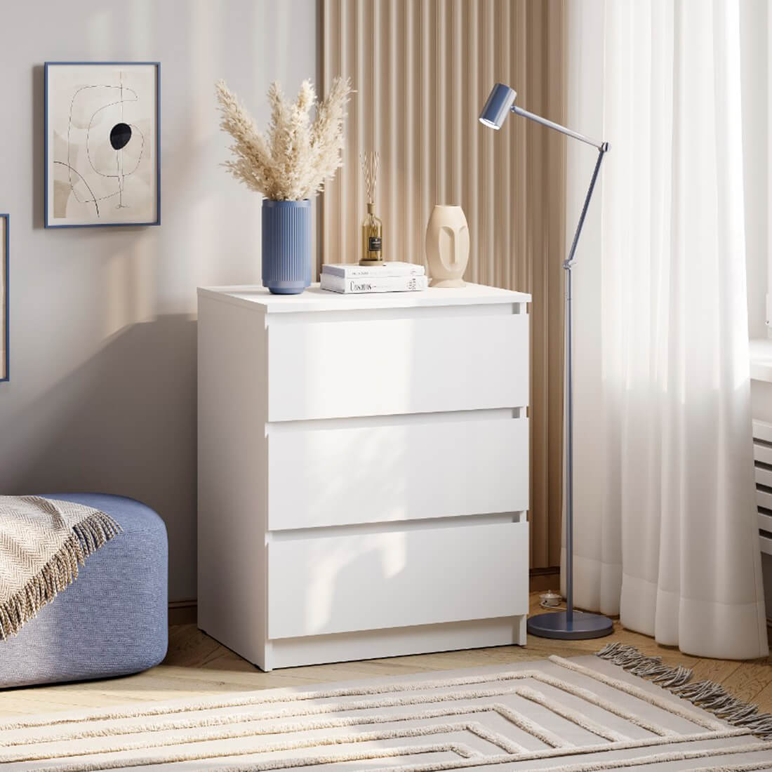 Модель КМ-01 из коллекции «Симпл» — это идеальный баланс компактности и вместительности. Благодаря продуманным габаритам (604×761×463 мм), комод органично впишется даже в небольшое пространство, будь то спальня, детская или прихожая.