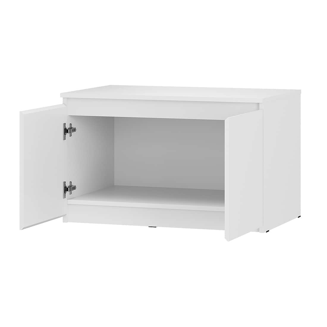 Тумба «Симпл» ТБ-06 — это воплощение универсальности и минимализма. Модель в чистом белом цвете органично впишется в интерьер прихожей, гостиной или спальни. Две распашные дверцы скрывают вместительные полки для хранения одежды, аксессуаров и других вещей. Прочная крышка выдерживает нагрузку до 10 кг — в спальне она может служить прикроватным столиком, а в прихожей — местом для ключей и мелочей. Лаконичный дизайн с интегрированными срезами вместо ручек и надежные пластиковые опоры делают тумбу стильным и практичным дополнением любого интерьера.