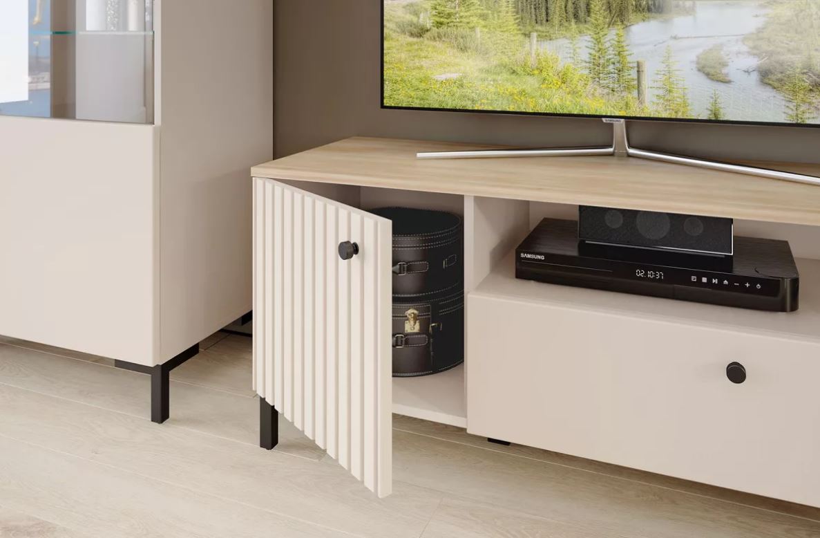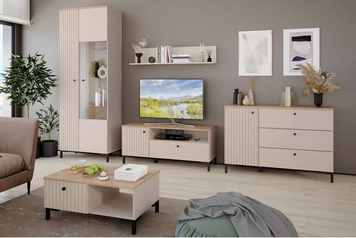 Модульная коллекция мебели "Тоскана", выполненная в оригинальном дизайне, соответствует всем актуальным тенденциям. Нежный оттенок Кашемир, мягкое матовое покрытие Soft-Touch, элегантная фрезеровка фасадов и контрастные черные ручки создают гармоничный дизайн, а высокие металлические ножки добавляют лёгкости.