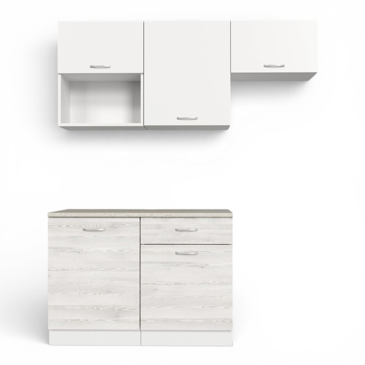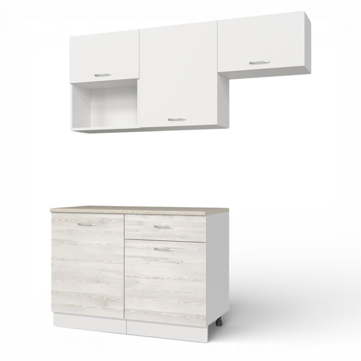 —Кухонный гарнитур Темпо №3 Белый/Сосна Лофт/Белый жемчуг/столеш. Берилл бежевый (без мойки) 1,2 м