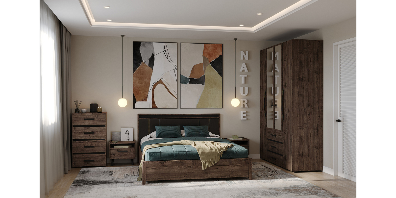 • · Стильный внешний вид: Благородный темный декор «Дуб Апрель» с контрастными черными планками легко впишется в современный интерьер.