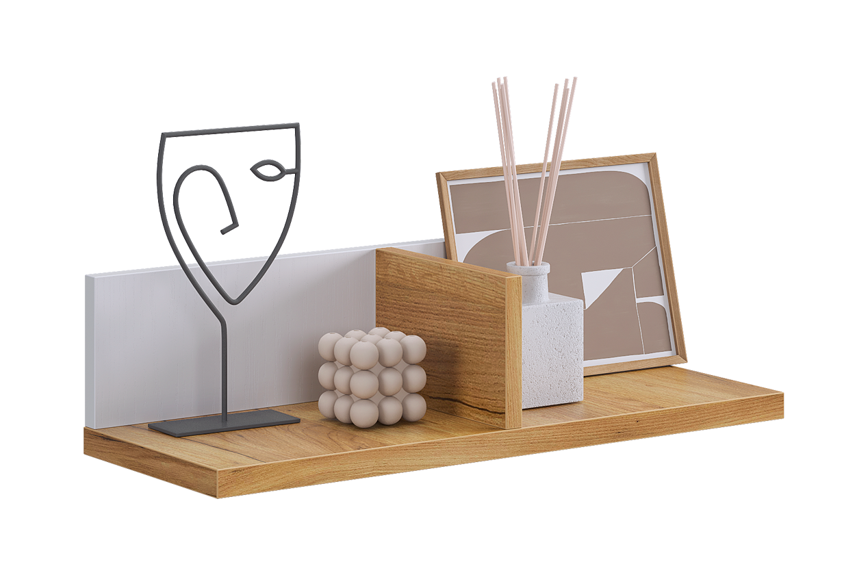 —Полка навесная Хюгге белое дерево/дуб крафт золотой