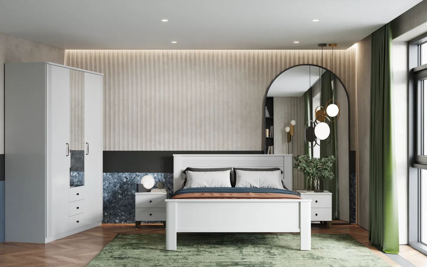 Просторный и функциональный шкаф из коллекции «Диана» станет центральным элементом вашей спальни. Модель объединяет все необходимые системы хранения: отделения для одежды на плечиках, множество полок и удобные выдвижные ящики. Благодаря встроенному зеркалу с фацетом шкаф не только решает задачи хранения, но и визуально расширяет пространство.
