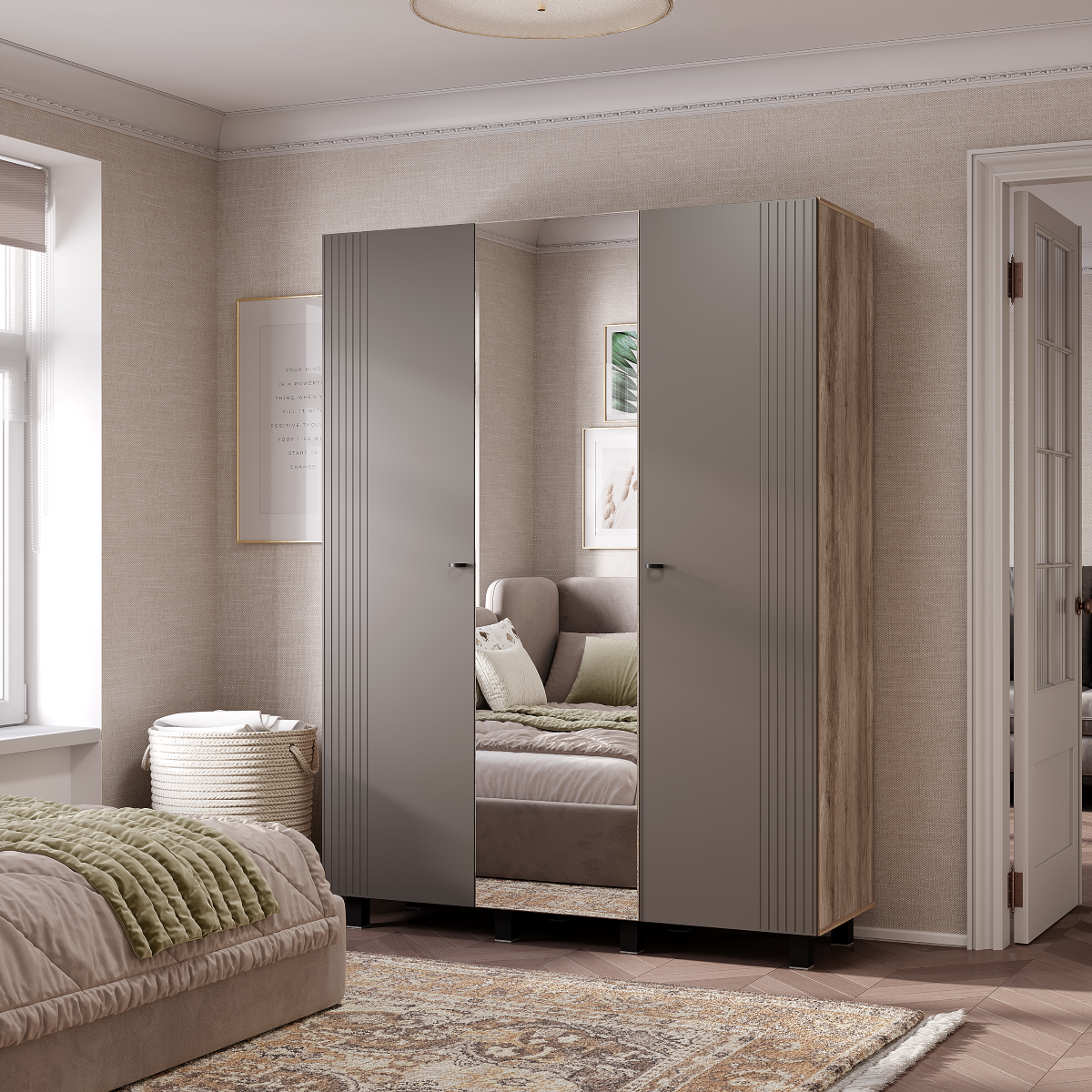 Трехстворчатый шкаф «Олива» ШК-08: Минимализм и максимальная вместительность
